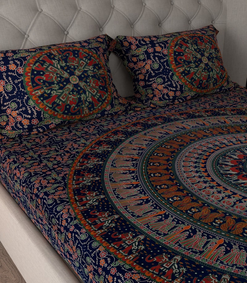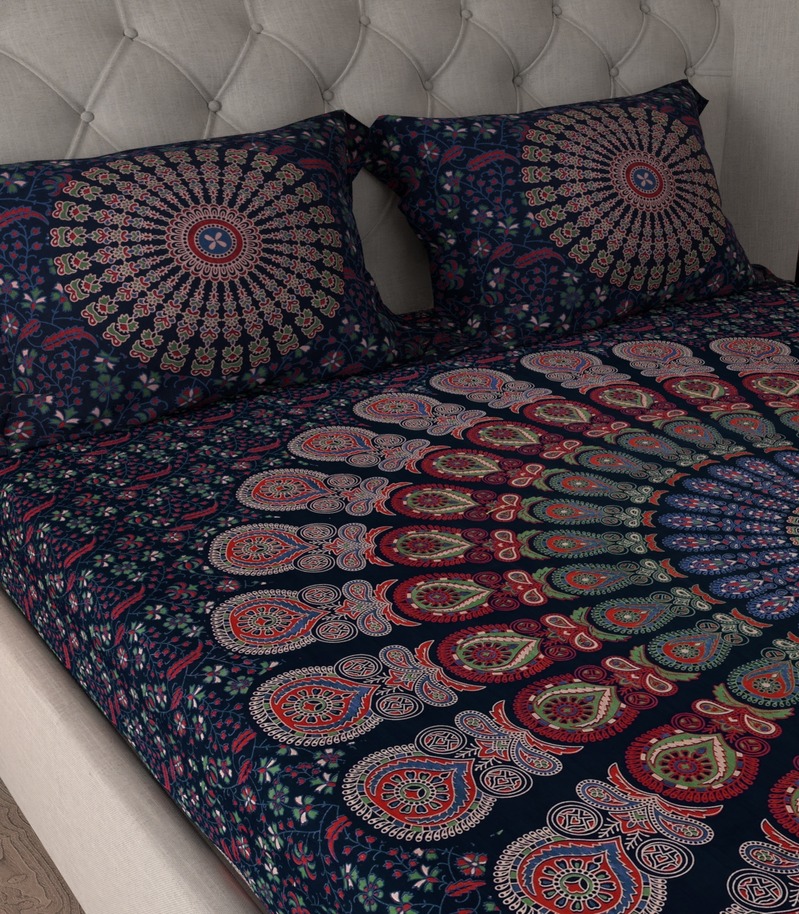 Set: 1 Double Bed Sheet + 2 Pillow Covers (Set of 3)