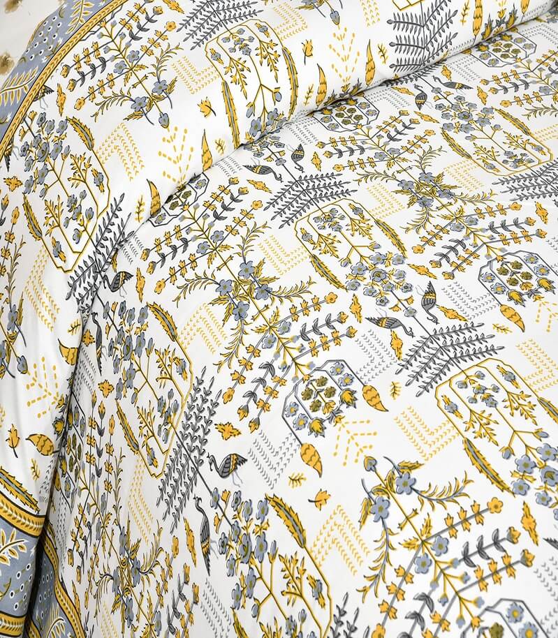 Engineered to balance traditional beauty with contemporary style, this bedsheet boasts beautiful Jaipuri prints in a gorgeous green and mustard color duo.