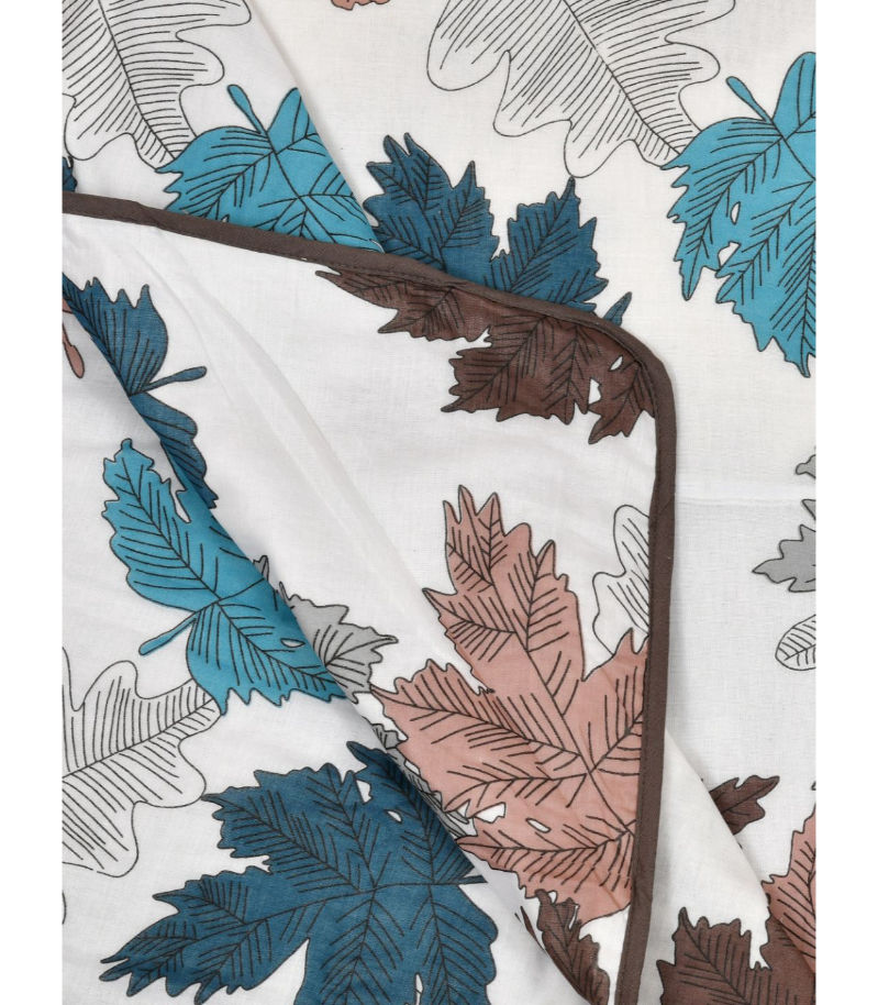 Composed of 100% pure cotton, this feather-light single bed dohar boasts a leaf-patterned multicolor print that brings a hint of nature and happiness to your bedroom. Its reversible pattern provides you with two new looks under one blanket.