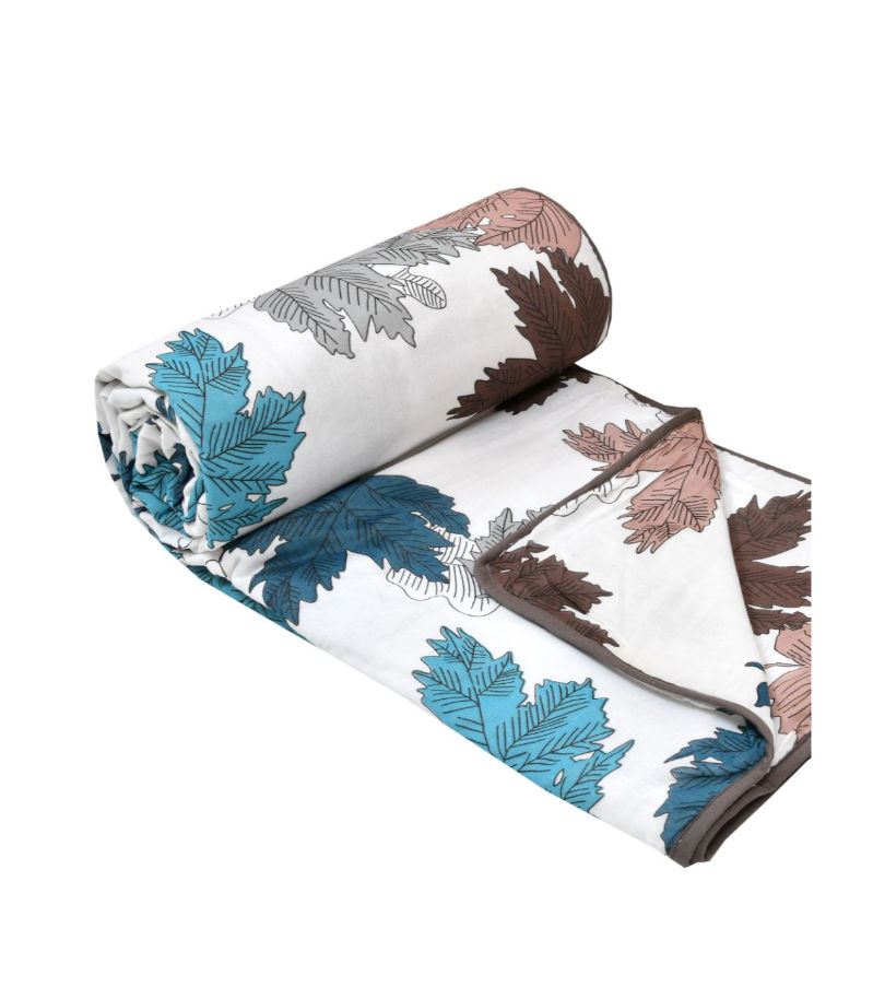 Item Name. : Autumn Maple – Pure Cotton Reversible Single Bed AC Dohar Blanket (Multicolor)
