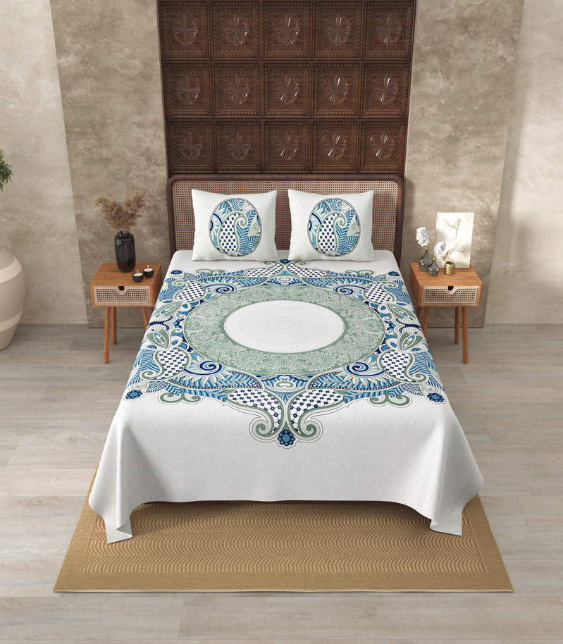 Premium Pure Cotton Double Bedsheet – 280 TC with 2 Pillow Covers