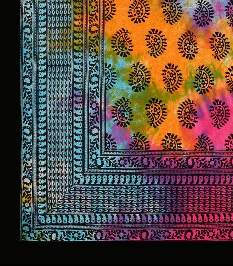 The multicolored Kerry pattern block print, which has been made by the traditional tie-and-dye method, gives a distinct and attractive look to your room.