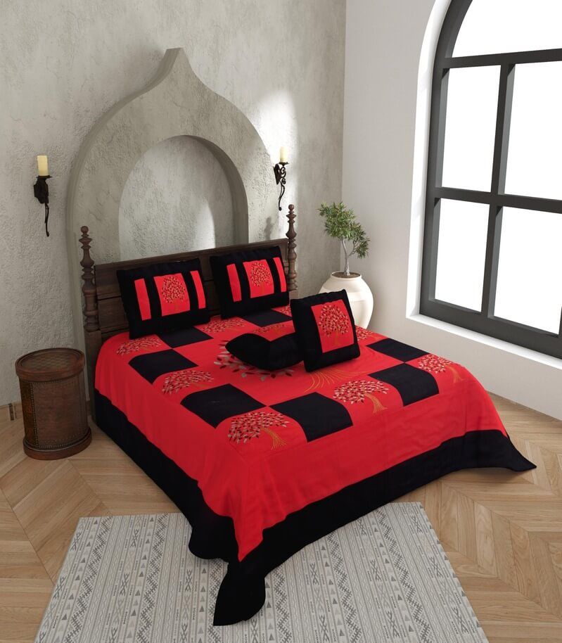 Transform your bedroom into a luxurious haven with our Patch Work 240TC Silk Double Bedsheet Set.
