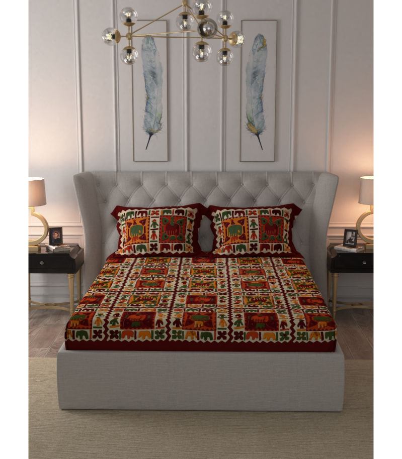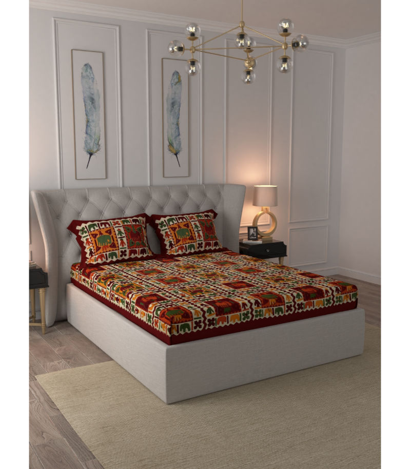 Crafted from high-quality cotton, this bedsheet features an eye-catching animal print with majestic elephant motifs, available in Blue, Multi, and Maroon color options.