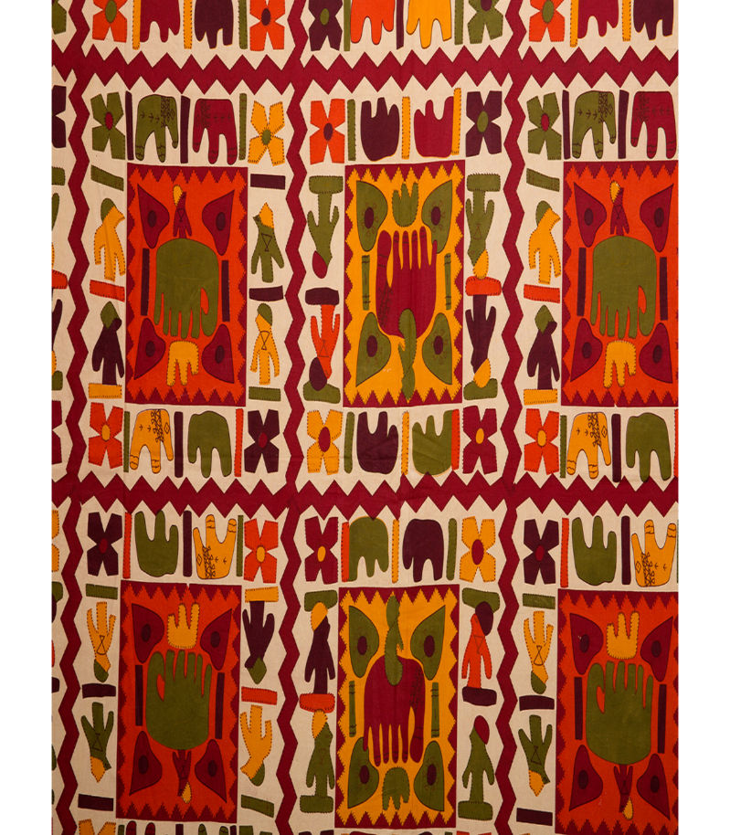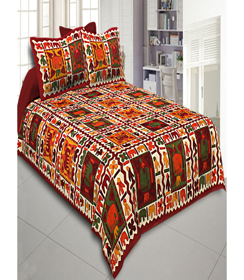 Name: Elephant Pattern Screen Print Double Bed Sheet (Blue, Multi, Maroon)