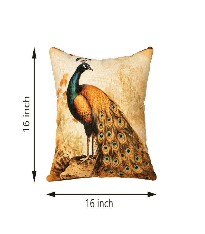 Ethnic Peacock Jute Digital Print Cushion Cover Set of 5 (16x16 inch) Give your living space a vibrant, sophisticated makeover with our Ethnic Peacock Jute Digital Print Cushion Cover Set of 5,