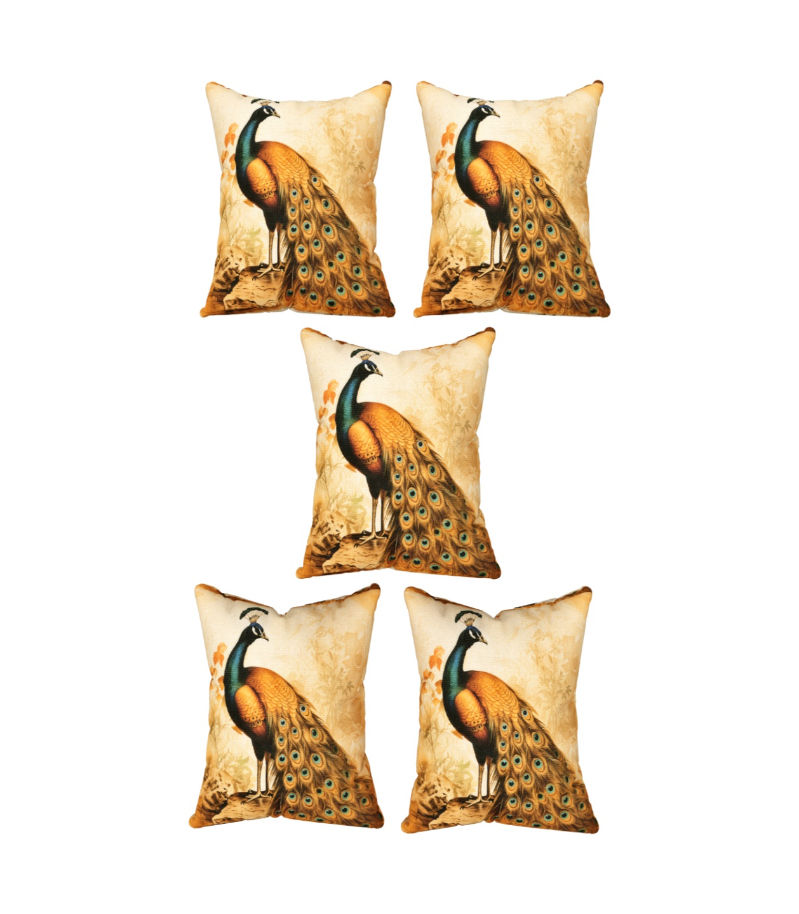 Name: Ethnic Peacock Jute Digital Print Cushion Cover Set of 5