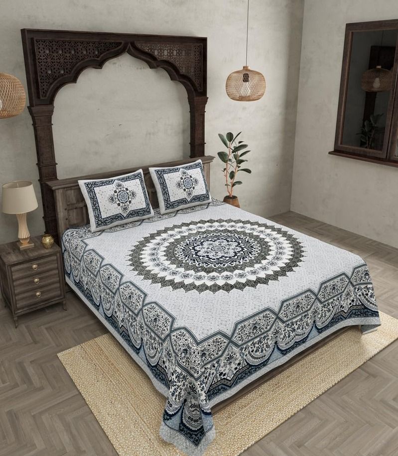 Key Features: Material: 100% Cotton, 240 TC Dimensions: Bedsheet - 108" X 100", Pillow Covers - 18" X 28"