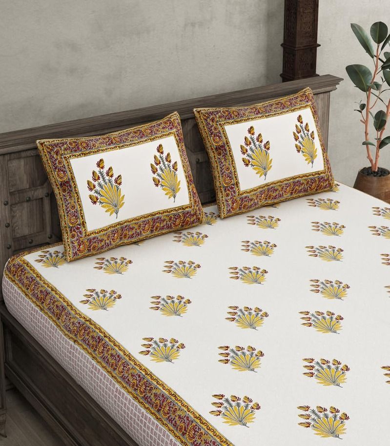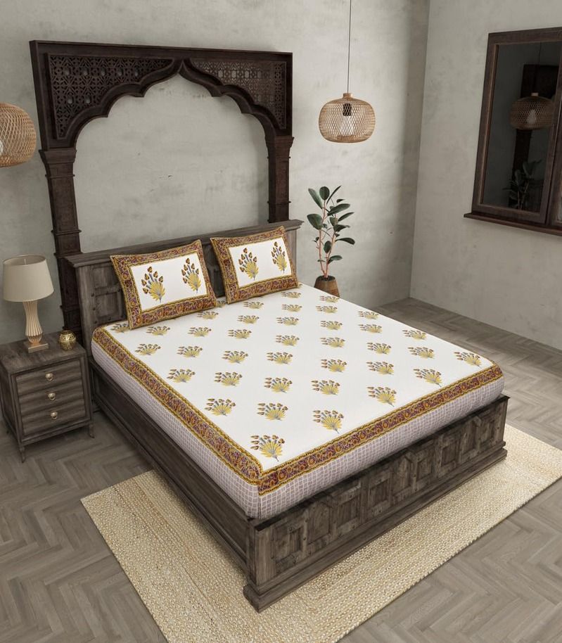 Item Name: Fortune Feathers Hand Block Bedsheet