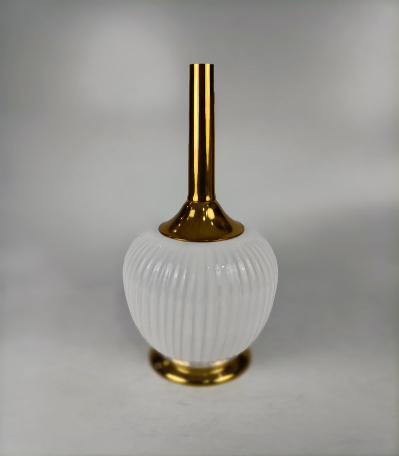 Made with care and sophistication, this beautiful flower vase is an ideal balance of strength, beauty, and elegance. The iron base, smoothened in a shiny white polish, is elegantly highlighted by delicate aluminum-cast gold-plated ornaments, providing a classic and lavish look. The slick resin coating gives it a glossy shine and defies wear, maintaining its beauty for years to come.