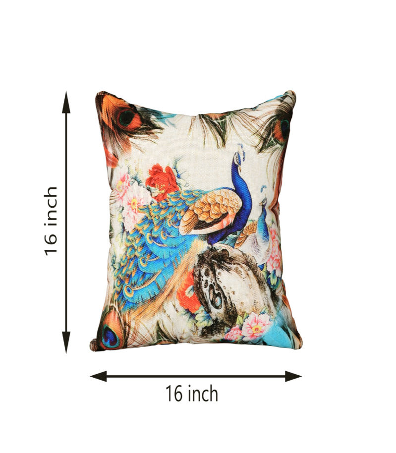 Authentic Handcrafted Design Each cushion cover showcases a beautiful peacock motif, digitally printed with vibrant colors that celebrate India's rich heritage and craftsmanship.