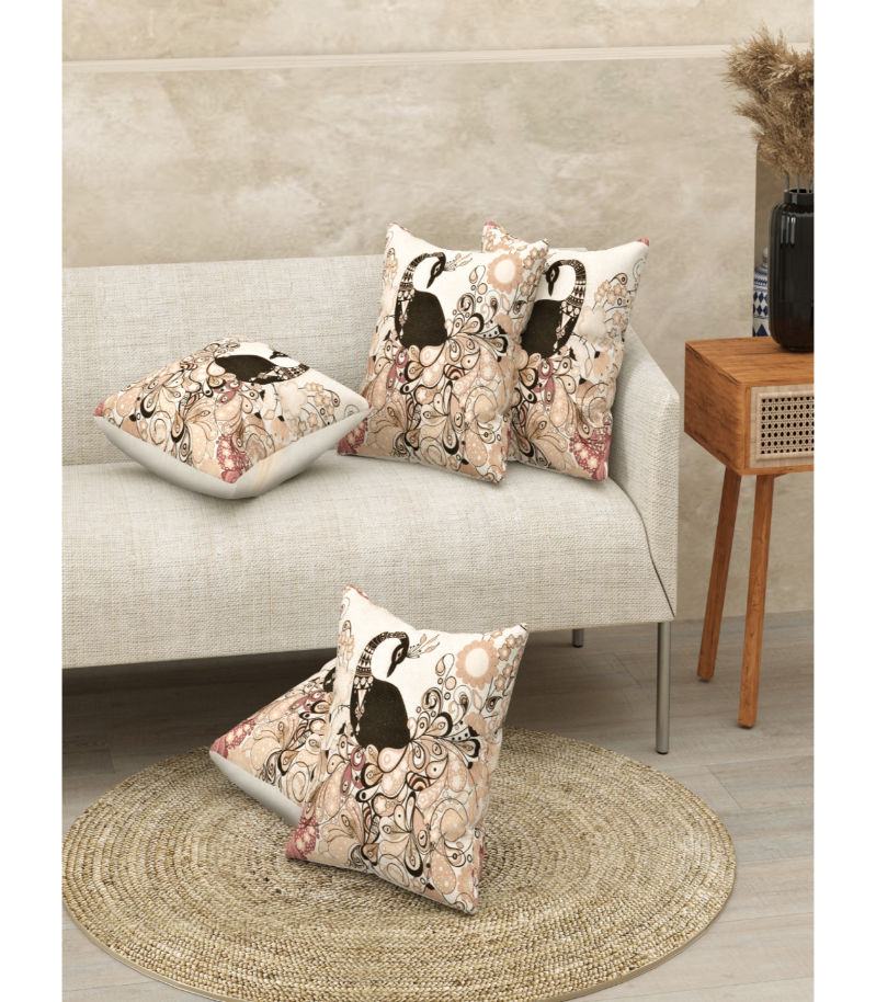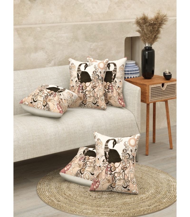 Celebrate tradition and style with the Heritage Bliss Peacock Jute Cushion Cover Set of 5—a perfect way to add a splash of cultural elegance to your home.