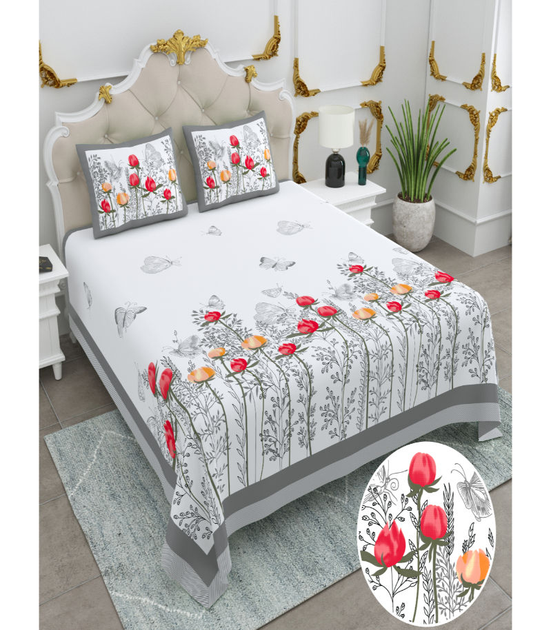 Bring timeless elegance and comfort to your bedroom with our Heritage Cotton Floral Design Bedsheets, crafted for king-size beds.