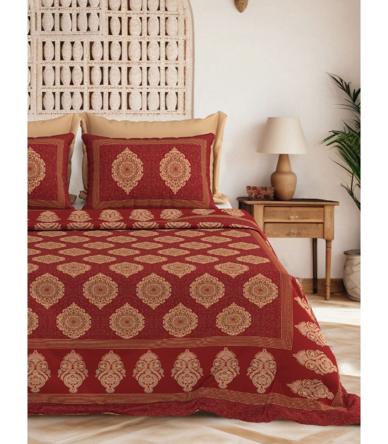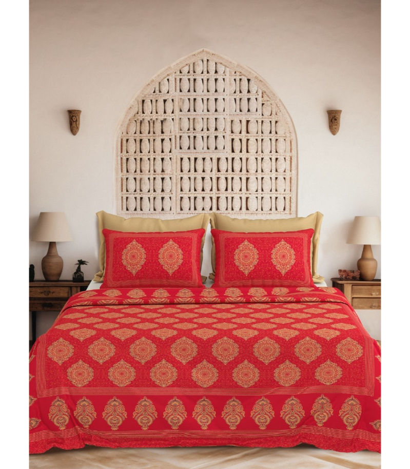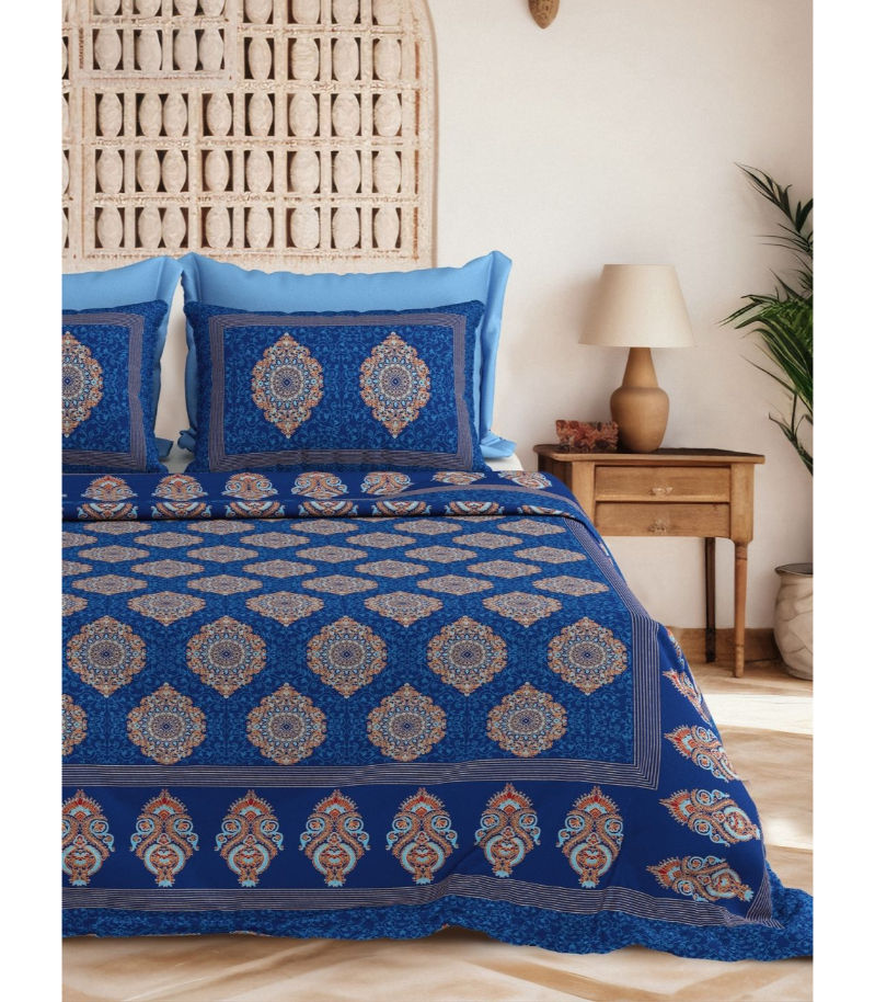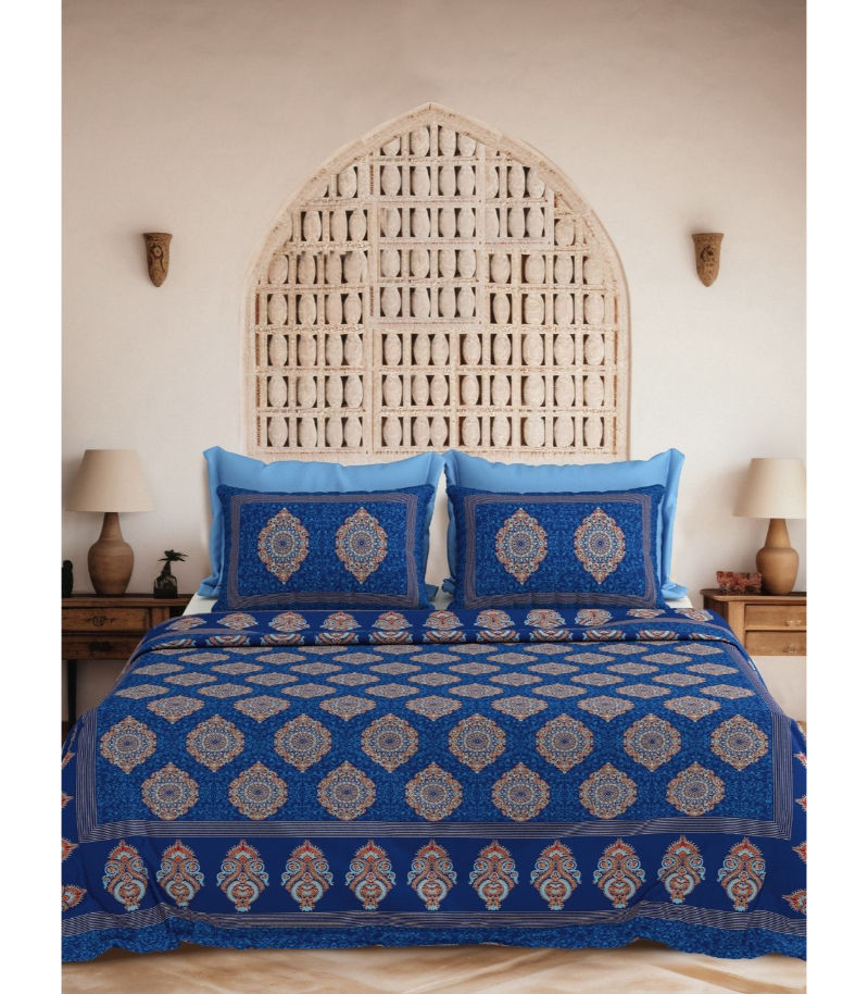 Name: King Size Bedsheet with Jaipuri Print and 2 Pillow Covers