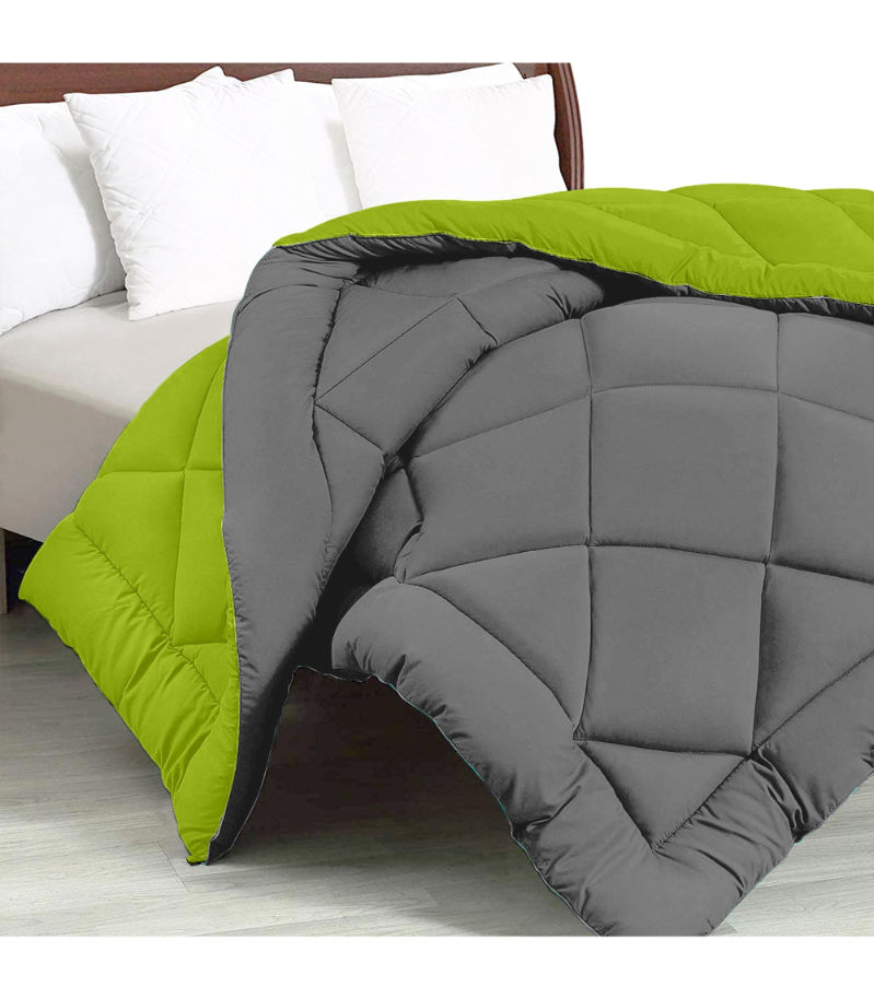 Bring home the perfect blend of comfort and style with our Lightweight Microfiber 300 GSM Reversible Comforter in refreshing Lemon Green.