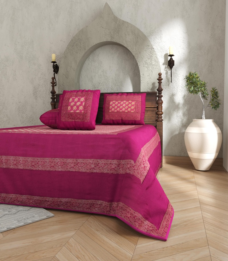 Maharani Touch Silk Bedsheet with Pillow Covers – Dark Green | Navy Blue | Maroon