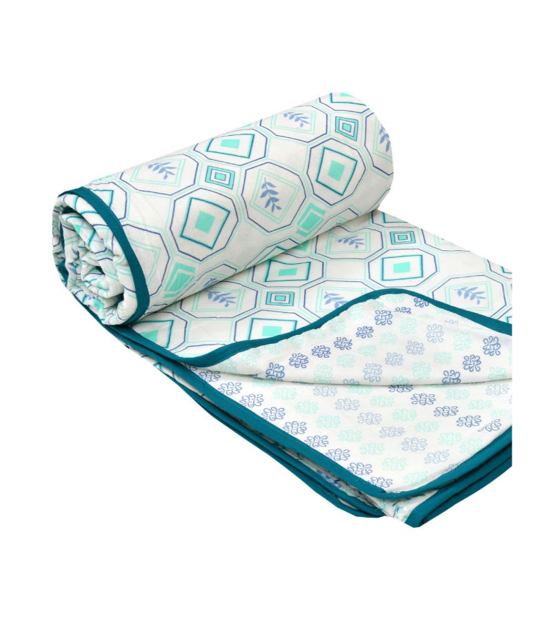 100% Pure Cotton – Breathable, natural & gentle on the skin Maze-Inspired Green Print – Nature-inspired yet artistic Reversible Look – Change it up anytime for a fresh feel ️ Single Bed Size – 224 cm x 148 cm for complete coverage ️ 150 GSM – Ideal for Summery weather & AC usage
