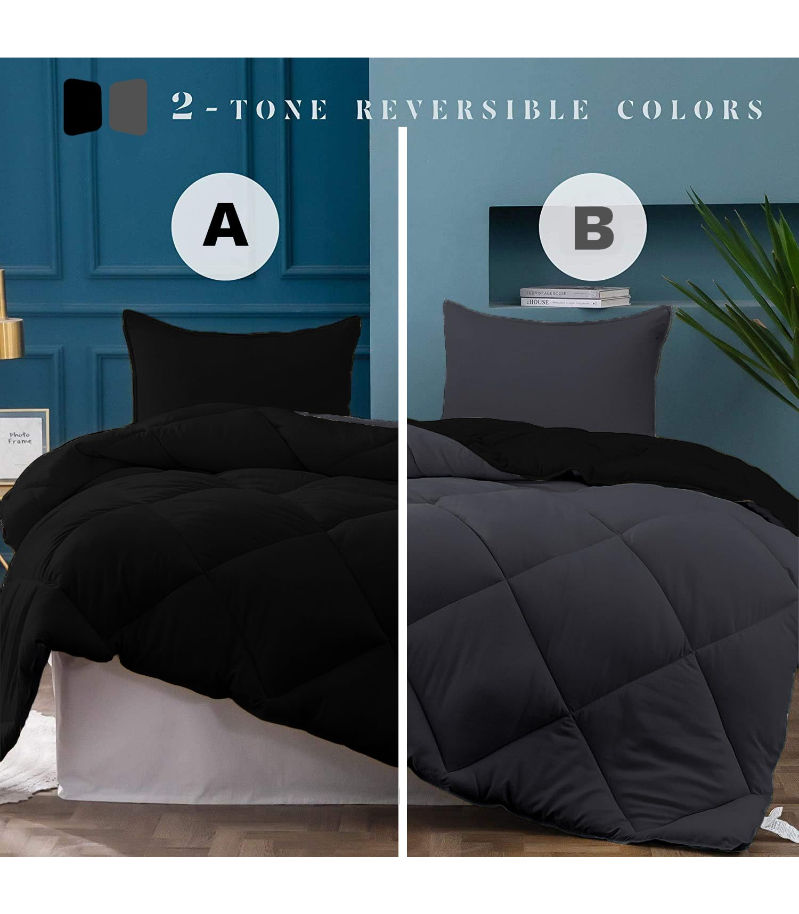Featuring a modern reversible design in elegant Black and Grey, this comforter adds a sophisticated touch to your bedroom decor.