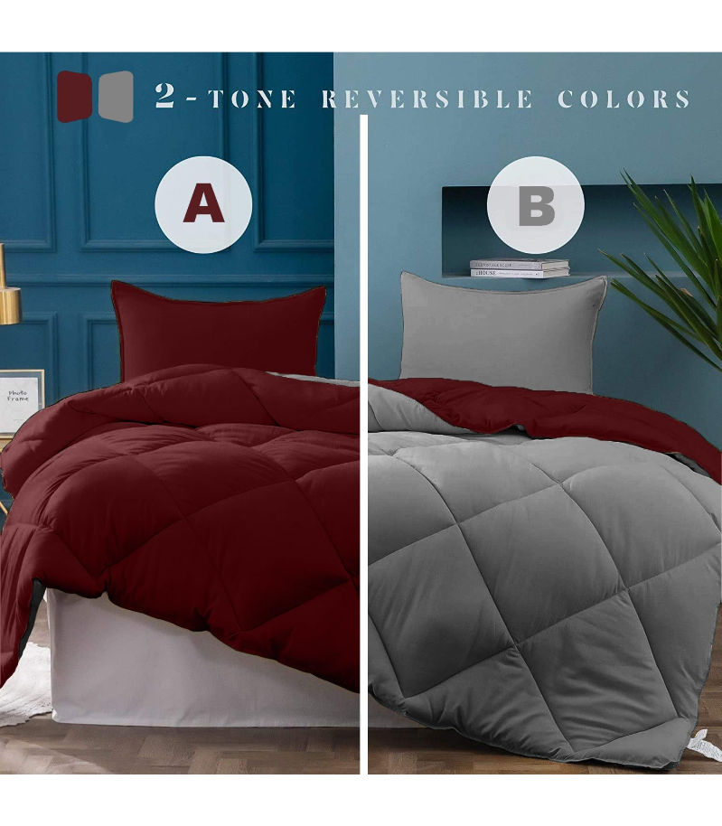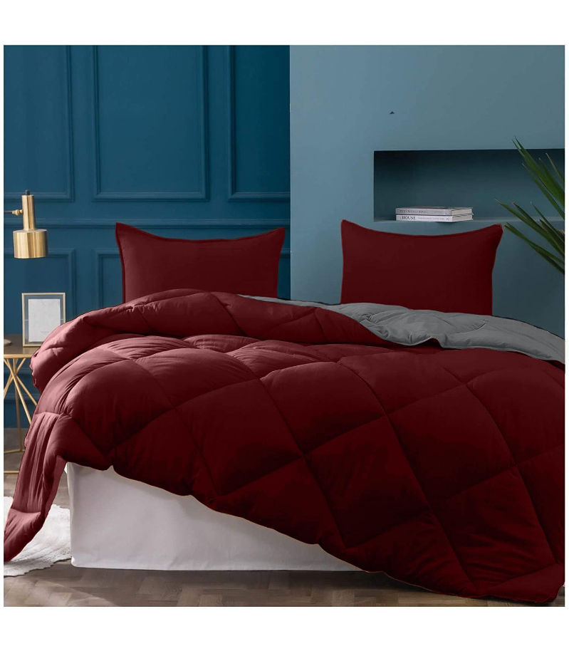 The reversible color scheme features a rich Maroon and Grey combination, adding a touch of elegance and versatility to your bedroom decor.
