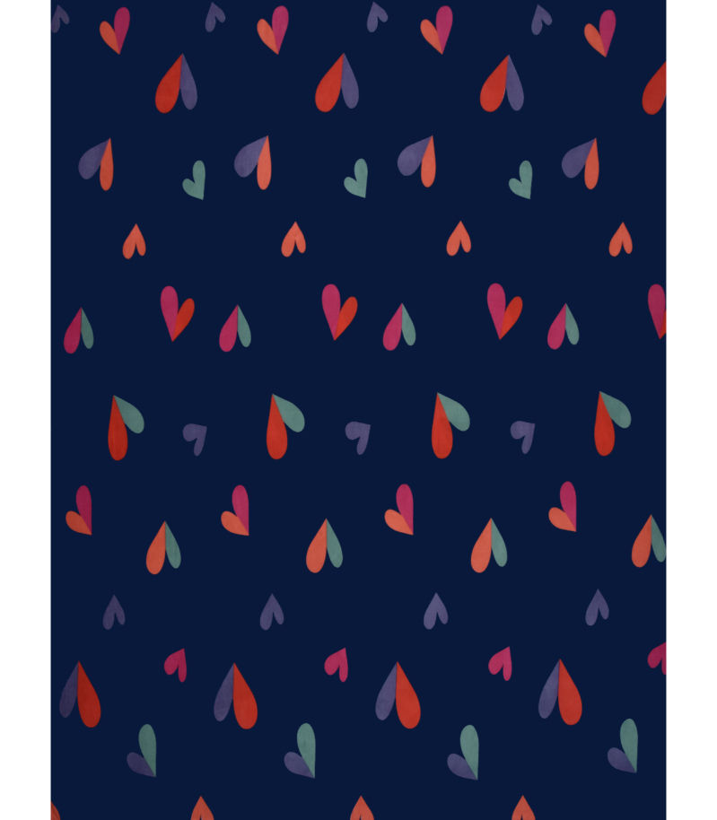 The charming multicolored hearts pattern set against a rich navy blue background lends a lively and joyful ambiance to your space.