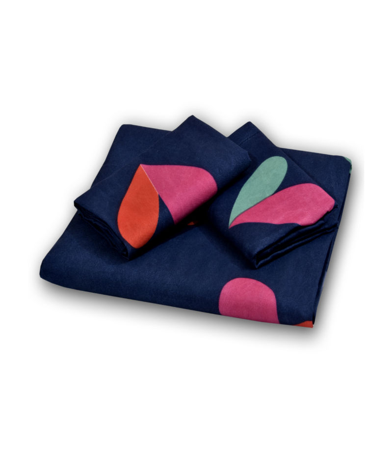 Add a vibrant and playful touch to your bedroom with the Navy Blue Shade with Multicolored Hearts Design Double Bedsheet.