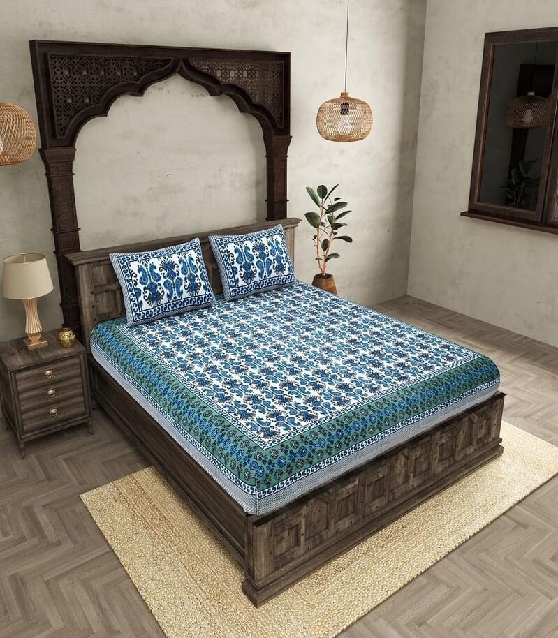 Why This Bedsheet is Perfect for You 100% Pure Cotton – Soft, breathable, and perfect for all seasons 290 Thread Count – Smooth, high-quality fabric that feels luxurious to the touch Super King Size – Spaciously large at 118" x 118", perfectly suited for larger beds Ikat Weave Design – Timeless and elegant design, traditional in appeal Complete Set – Comprises two pillow covers of the same design to make the look complete Durable & Easy Care – Robust fabric that lasts long while still being soft to touch