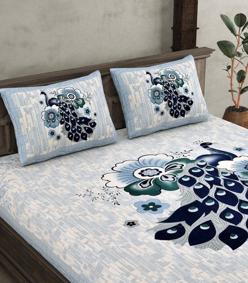 Take home a piece of Rajasthan's royal craftsmanship 180 TC 100% Cotton Jaipuri Peacock Printed Bedsheet.