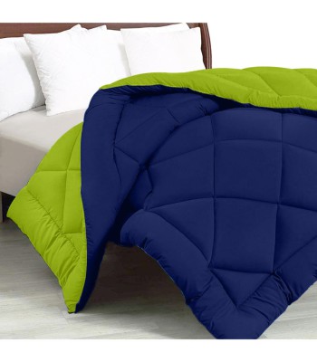 microfiber comforter double bed, 300 GSM AC comforter, reversible winter quilt, navy blue lemon green blanket, soft microfiber duvet, double bed winter comforter, lightweight bed quilt, warm reversible blanket, microfiber bedding set, AC room comforter