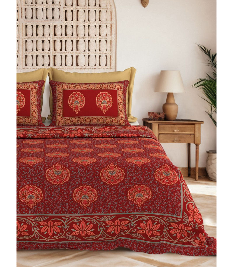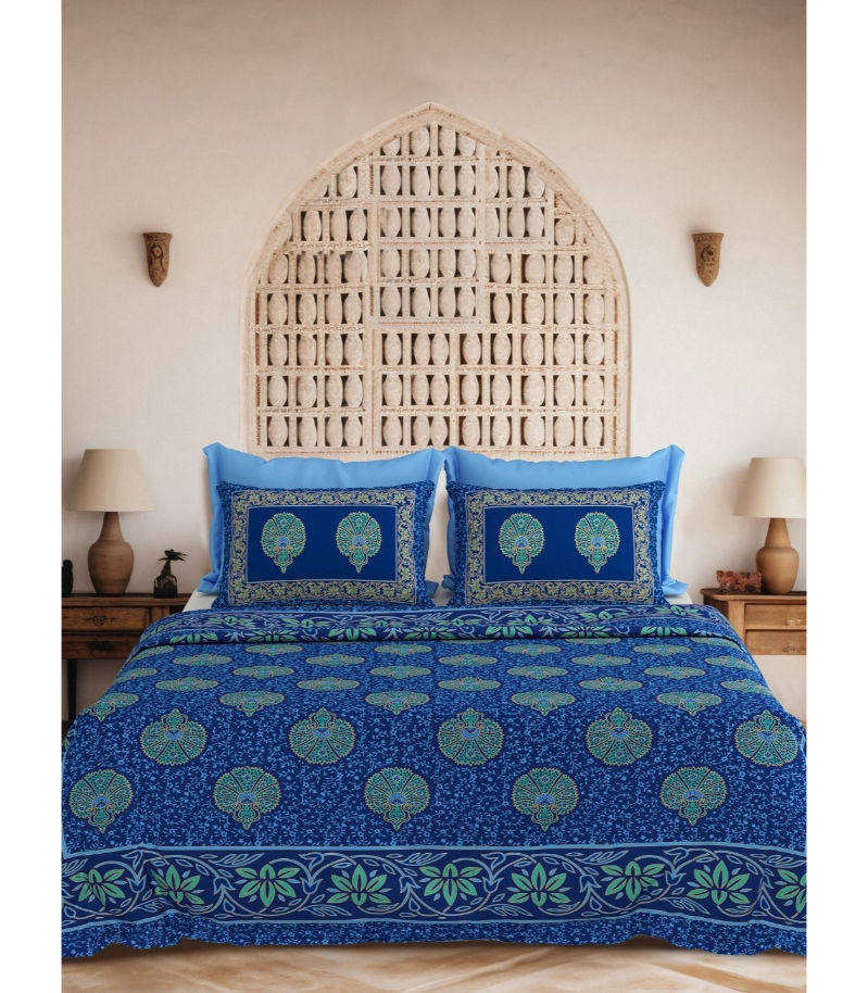 Transform your bedroom with the luxurious Royale Cotton Bedsheet and Pillow Set, featuring exquisite Jaipuri prints on 100% pure cotton fabric.
