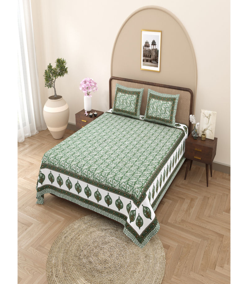 Made from 100% pure cotton, this bedsheet features authentic Jaipuri block print designs in soothing green tones that bring a touch of nature-inspired elegance to your decor. T