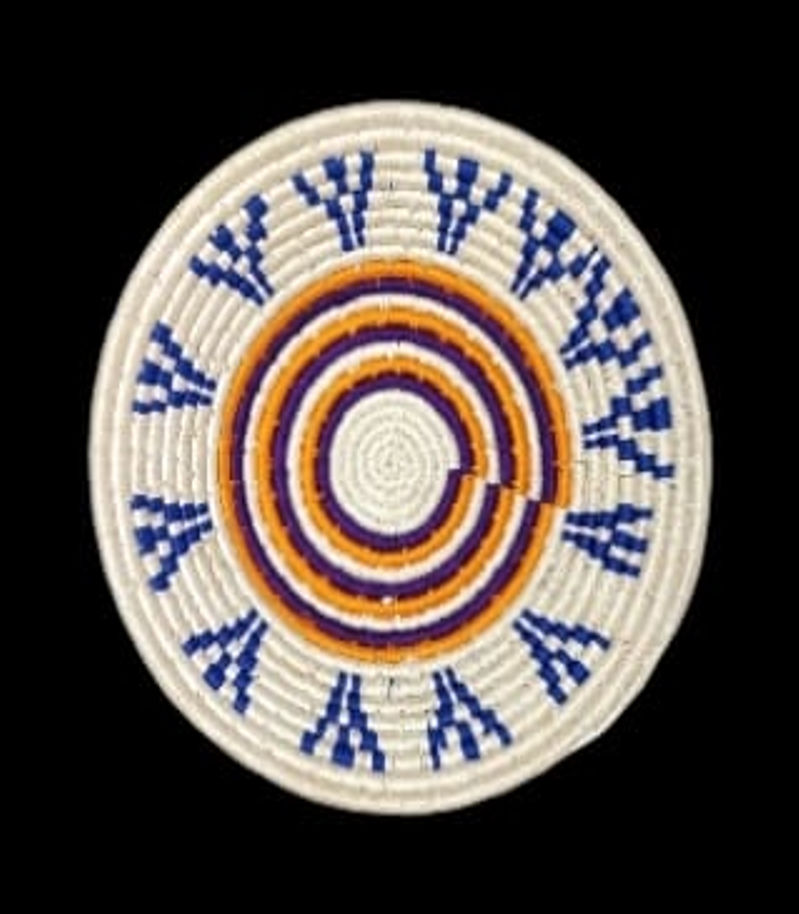 Add a splash of nature and heritage to your abode with our Handwoven Sabai Grass Wall Plate. Carefully woven by rural communities, this sustainable and eco-friendly wall decoration piece combines traditional craftsmanship with contemporary style. The detailed weaving design, paired with striking colors of mustard yellow, deep blue, and fuchsia pink, introduces a bold, artistic touch to any room.