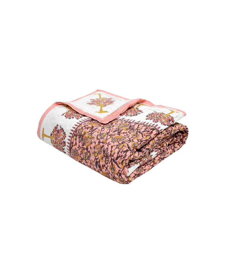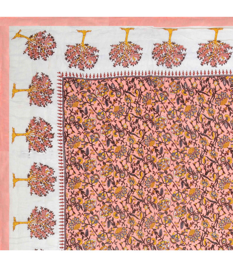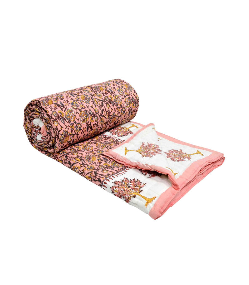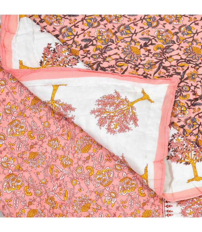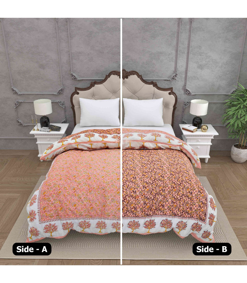 Name : Saffron Tree Motif Harmony Floral Print Double Sided Quilt Rajai