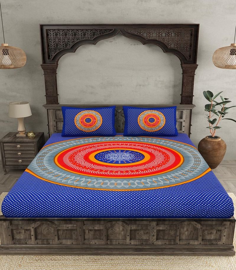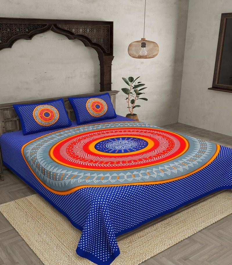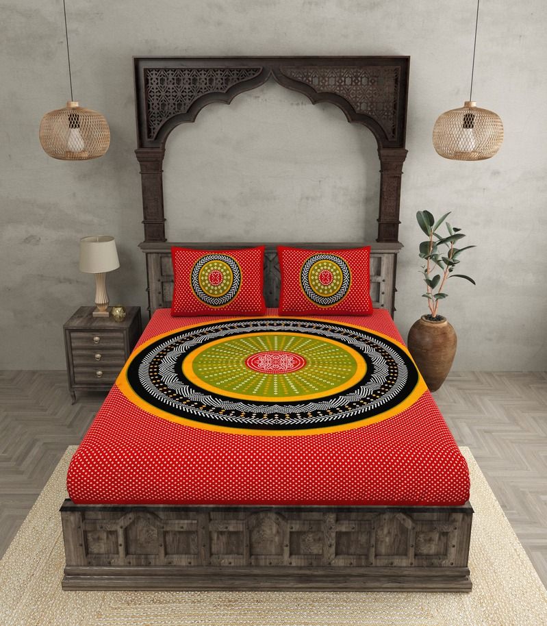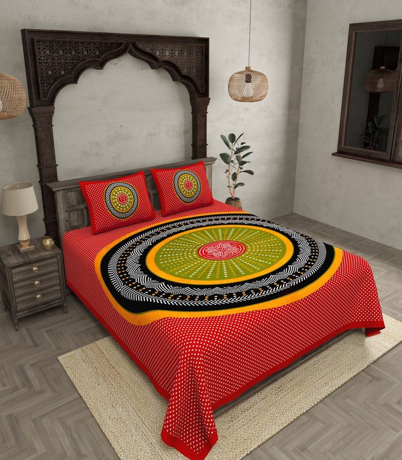 Turn your bedroom into a colorful oasis with this beautiful Cotton 210 TC Bandhej Print Bedsheet, specifically designed for double beds.