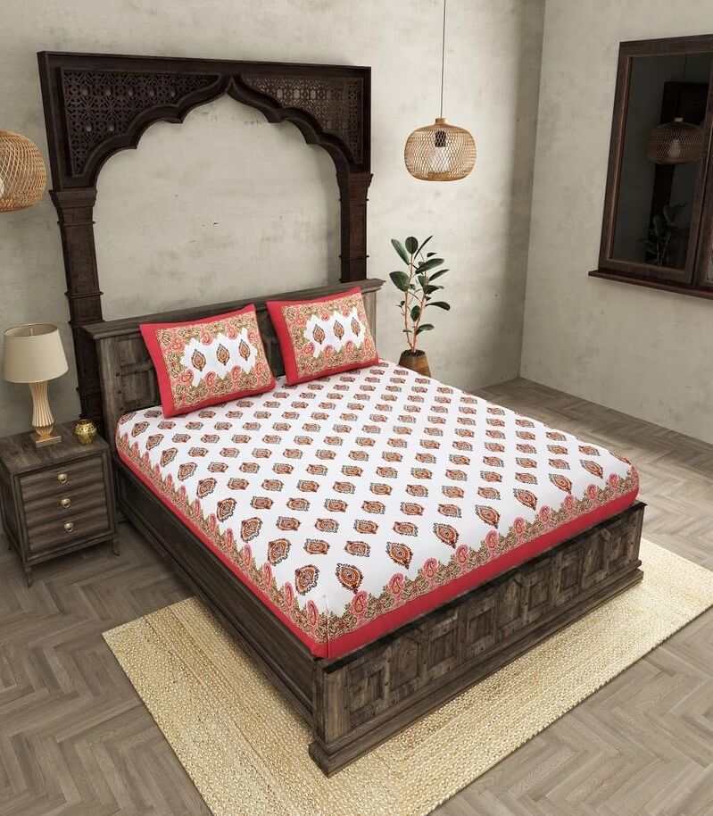 Add the classic charm of Indian block printing to your bedroom Premium Cotton Bedsheet Set.