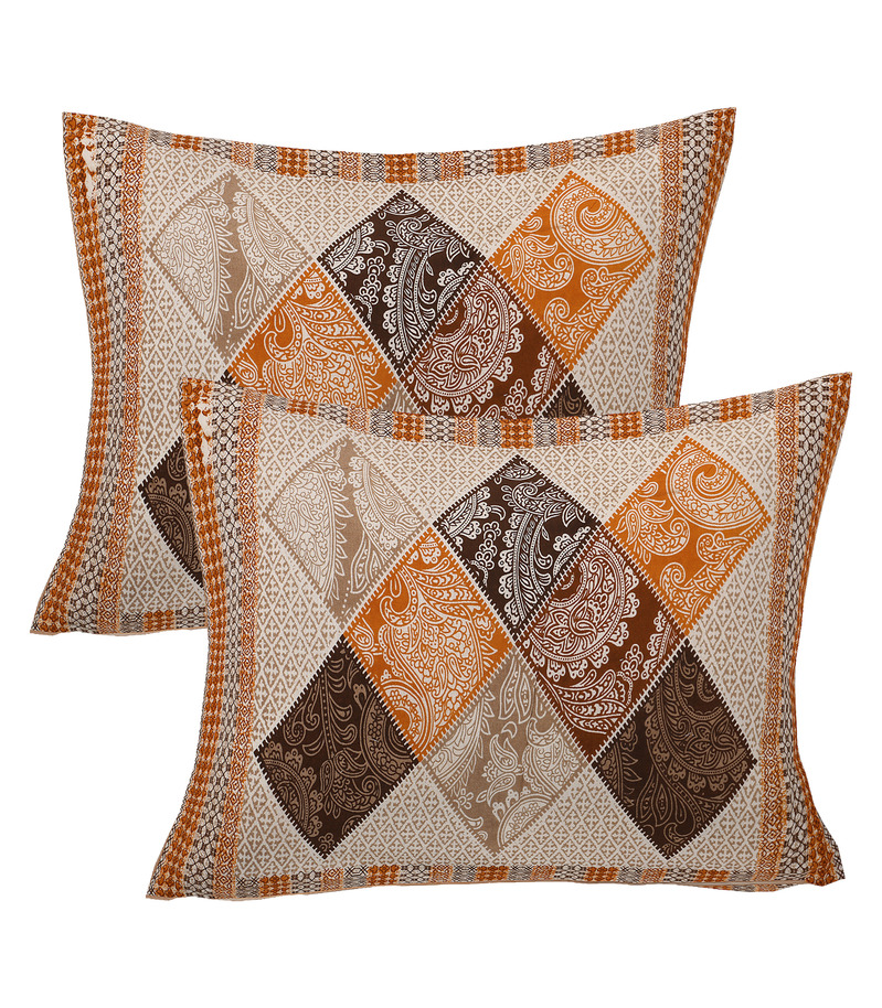 Classic Brown Ethnic Tiles Print Cotton Bedsheet – Double Bed with Pillow Covers