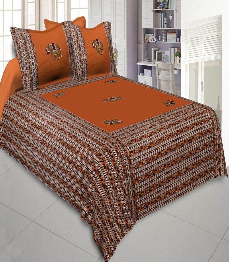 Upscale your bedroom interior with this Embroidery Patch Work Sanganeri Print Bedsheet Set. Great as a gift or as a personal