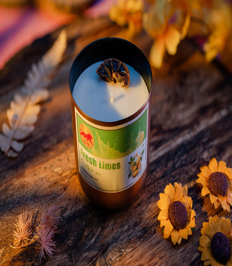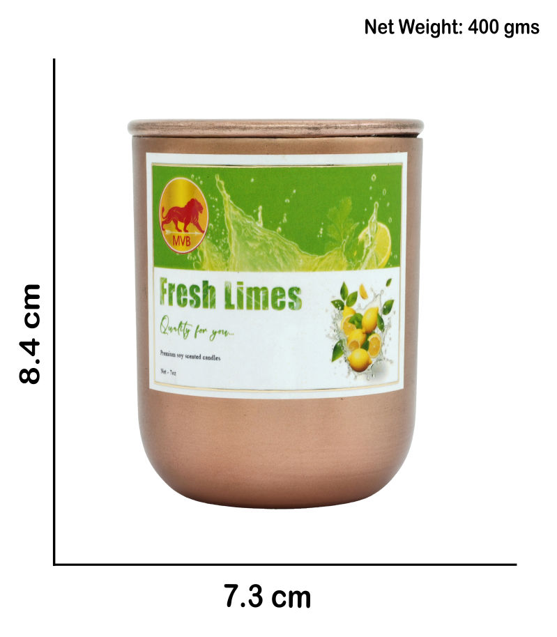 Unleash the classy freshness of MVB Vegan Organic Hand-Poured Pure Soya Wax Candle, beautifully packaged in a beautiful copper metal jar with the citrus, zesty beauty of Lime Essential Oil.