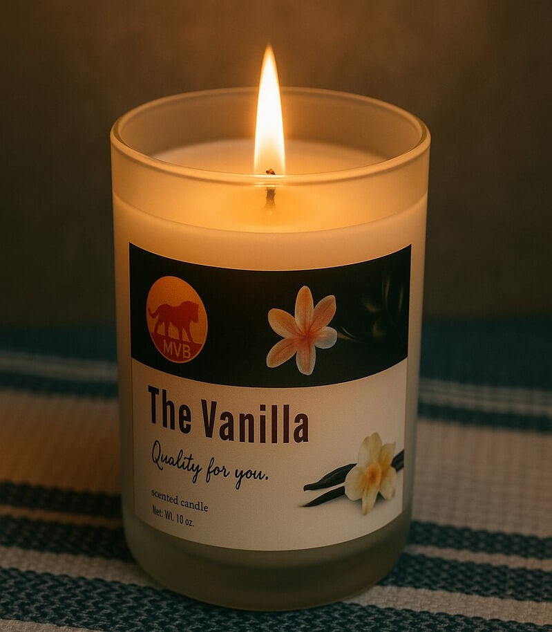 MVB Vegan Organic Hand-Poured Soya Wax Candle – Vanilla Bliss in a Stylish White Glass Jar