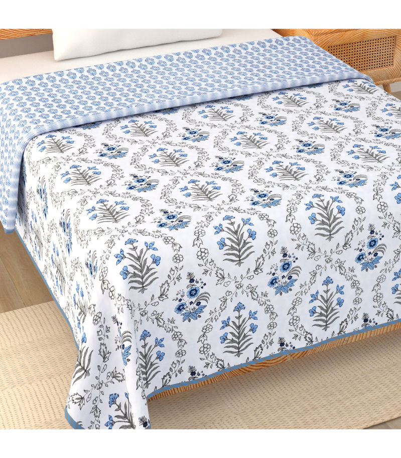 Item Name. : Block Print Pure Premium MulMul Cotton Single Bed Dohar-Nebulous Blue & Green