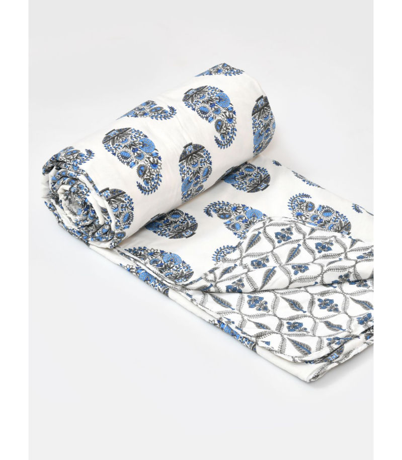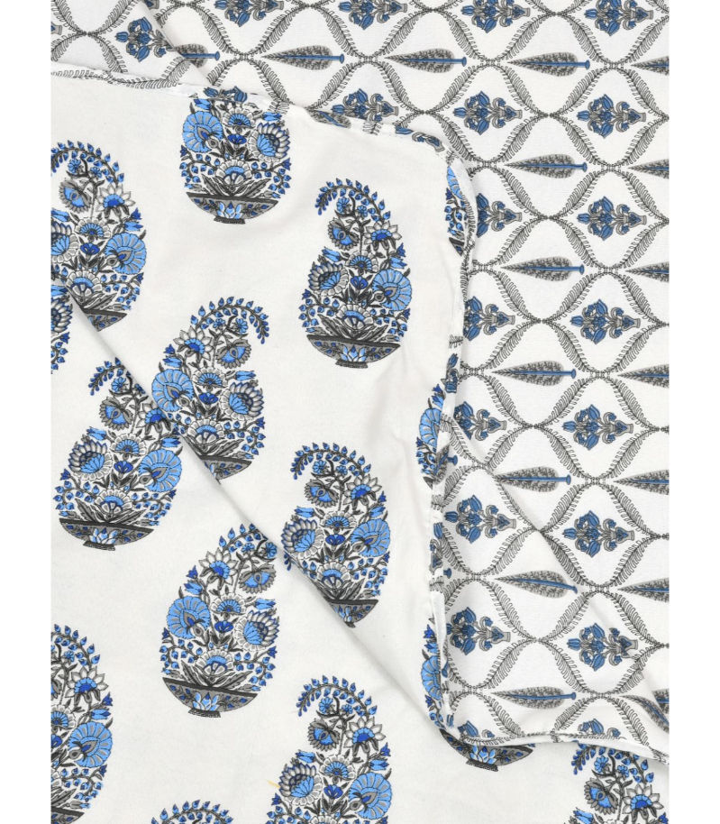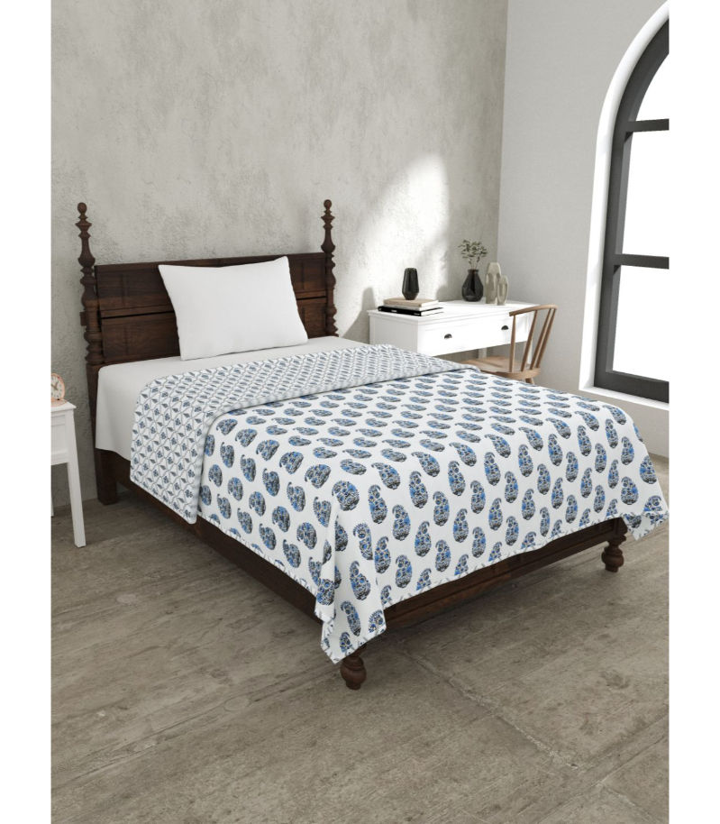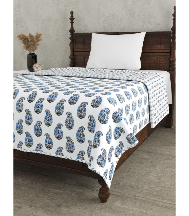 Wrap yourself in vintage elegance with our Paisley Print 100% Cotton Single Bed Dohars in gentle Pink and soothing Blue shades.