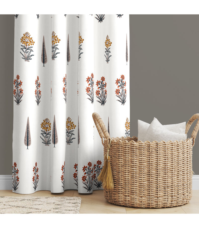 Take home the essence of Rajasthan in these stunningly handcrafted Jaipuri Boota Print Cotton Curtains, complete with a gorgeous combination of pink and mustard flowers and earth brown leaf patterns.