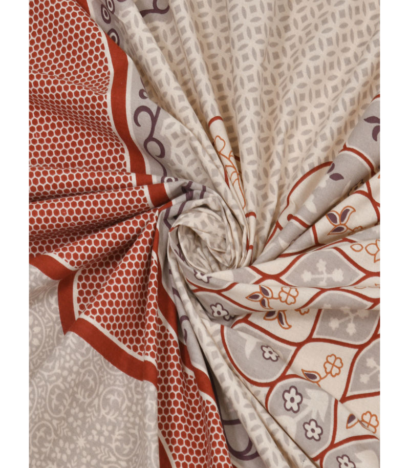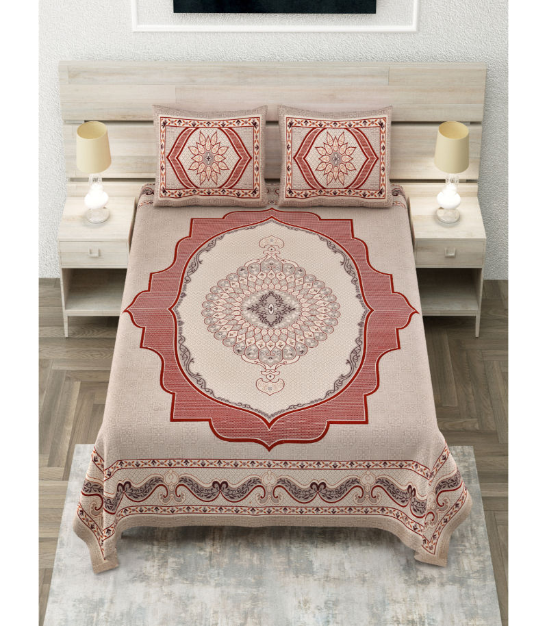 Crafted from premium 100% pure cotton, this king size bedsheet features a striking multicolor Jaipuri print inspired by the elegance of lotus motifs and rich patterns.