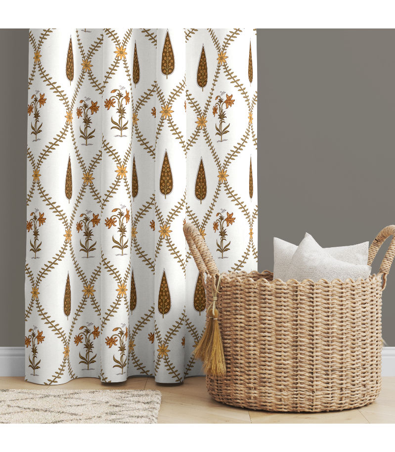 Item Name.: Pinklay Golden Bloom Curtains – Hand Block Printed Floral Elegance