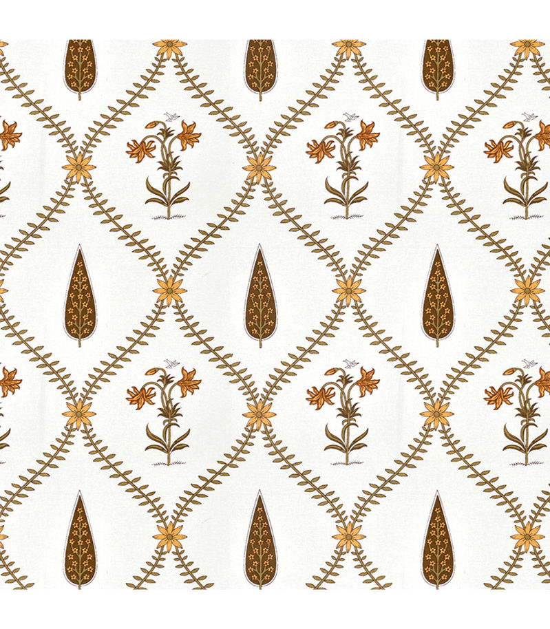 Color Scheme: Warm Yellow base with Brown Floral Block Prints