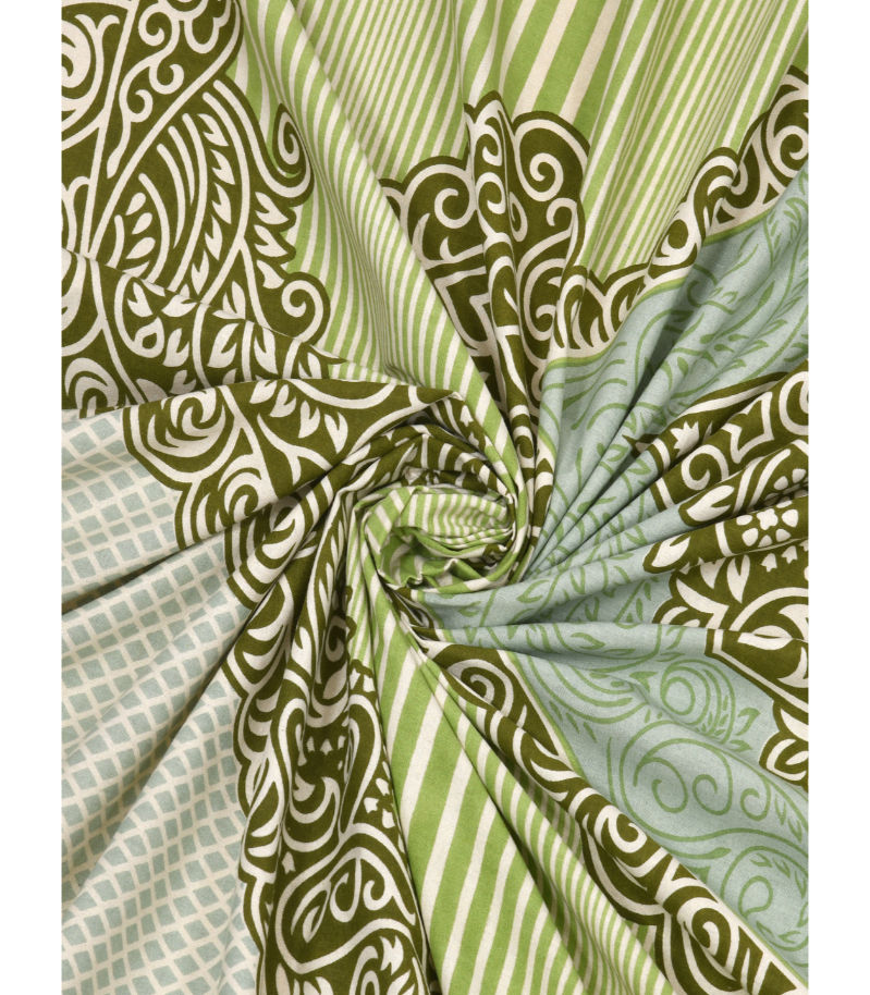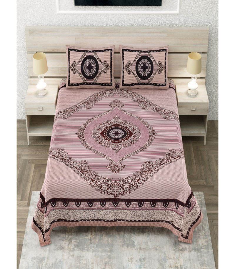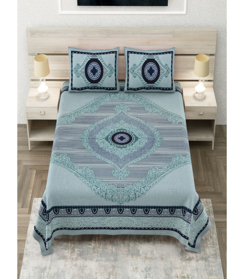 • king size bedsheets in different multicolor Shubh Labh designsCrafted from 100% pure cotton for all-season breathability and softnessGenerous size (274cm x 274cm) for full bed coveragePremium 200 thread count and 153 GSM for superior comfort and strengthWeighs 950 grams per bedsheet for a premium