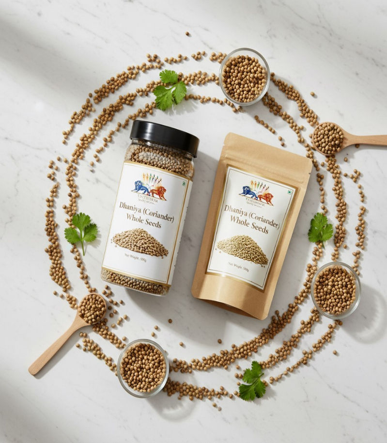 Premium whole coriander seeds - fresh, citrusy aroma for authentic Indian cooking.