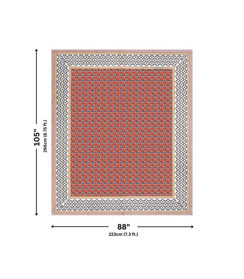 Name : Classic Sanganeri Buti Double Bedsheet Pure Cotton Sku No : DBS1625262728 Color : Brown,Green,Blue,Red Febric : Cotton Size : Double Thread Count : 180 GSM: 150 Length : 228 Widht : 274 Weight :950 g