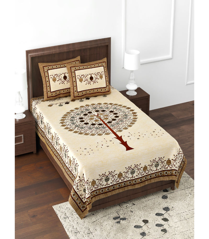 Brighten your bedroom with the Festive Creation Queen Size Cotton Bedsheet, a perfect blend of elegance, culture, and comfort.