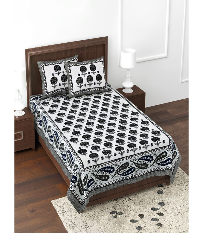 Bring nature-inspired elegance to your bedroom with the LeafLand Queen Size Cotton Bedsheet, beautifully designed in authentic Jaipuri print.