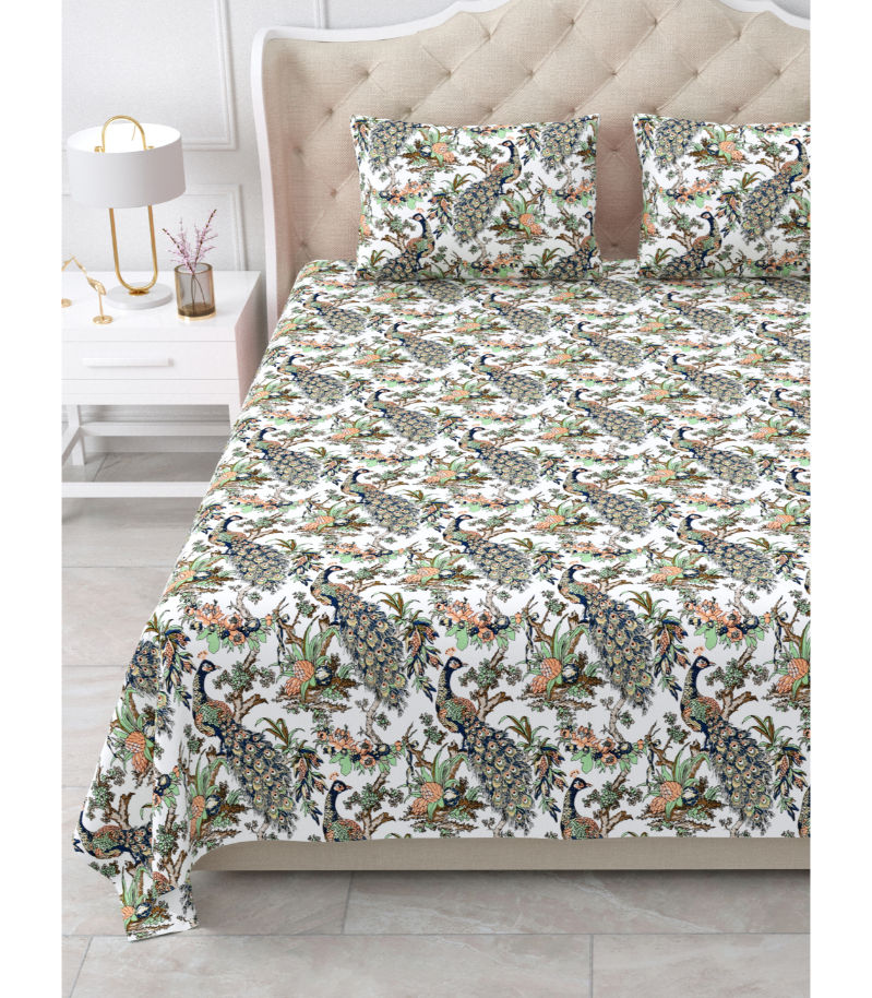 Add an exquisite touch of Indian royalty to your bedroom with the Mayura Royal Feather Garden Pure Cotton King Size Bedsheet.